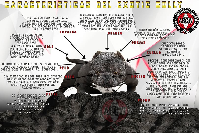 “Siendo el Exotic Bully una nueva raza o raza en construcción las normas actuales se pueden modificar y ajustar adaptándose en pro del mejoramiento de la raza“